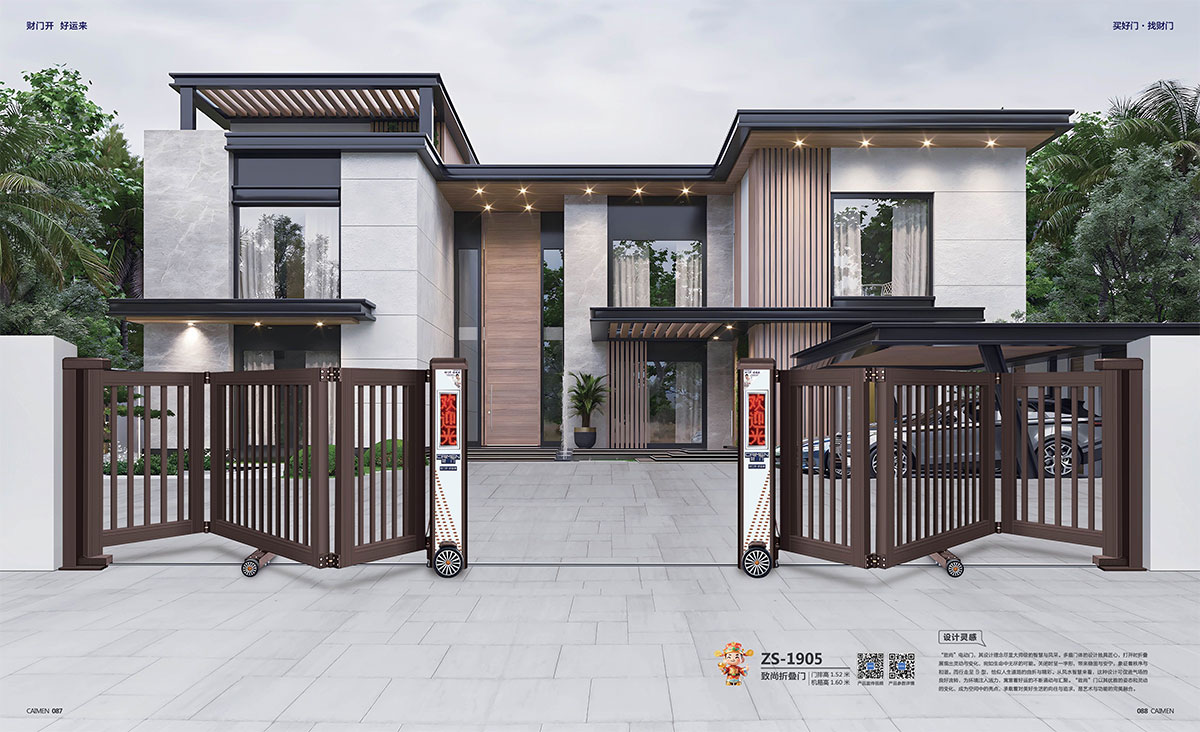 “致尚”电动门,其设计理念尽显大师级的智慧与风采。多扇门体的设计独具匠心,打开时折叠展现出灵动与变化,宛如生命中无尽的可能。关闭时呈一字形,带来稳固与安宁,象征着秩序与和谐。而行走呈 S型,恰似人生道路的曲折与精彩。从风水智慧来看,这种设计可促进气场的良好流转,为环境注入活力,寓意着好运的不断涌动与汇聚。“致尚”门以其优雅的姿态和灵动的变化,成为空间中的亮点承载着对美好生活的向往与追求,是艺术与功能的完美融合。